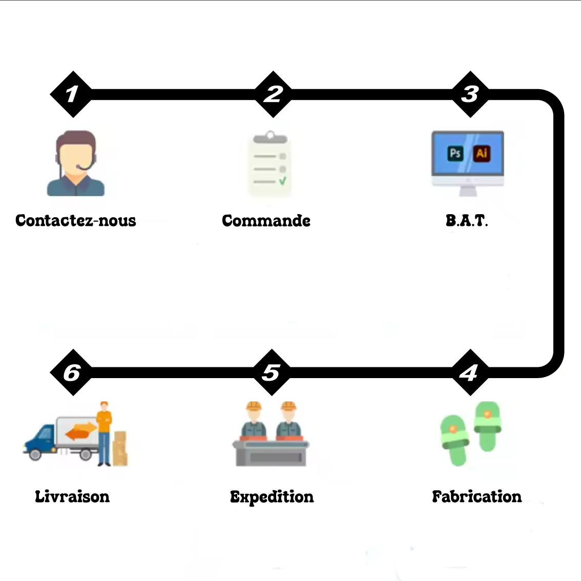 - Contactez-nous par mail et confirmez nous votre commande : quantité, couleurs, tailles des sandales et votre logo.